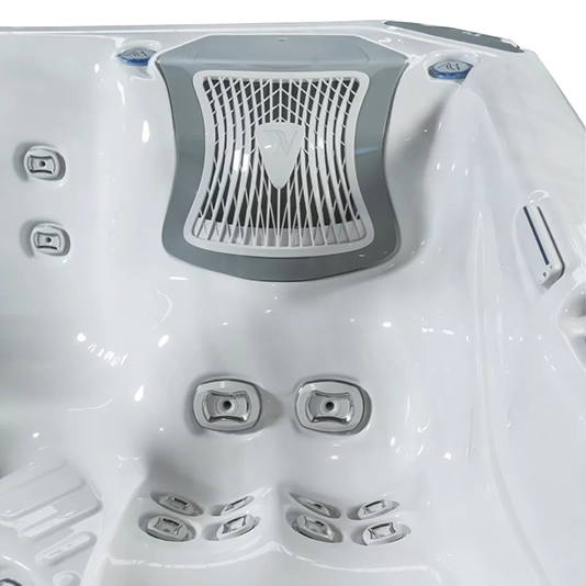 The Kilimanjaro hot tub features 59 incredible jets, 6 seats, and a full-sized lounger. This hot tub makes hydrotherapy unforgettable with its infinity foot massage plus foot, calf, and thigh massage in one reclining seat – all at once! Our PeakLife spas have the new LightSide™ design cabinet paired with vertical corner elements, lending an elegant touch to the aesthetics.