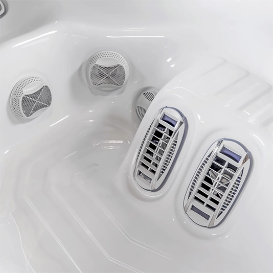 The new circulation jet has been designed to have 3 zones, where 2 zones are pointed downwards to stir up the sand and dirt from the bottom of the hot tub.